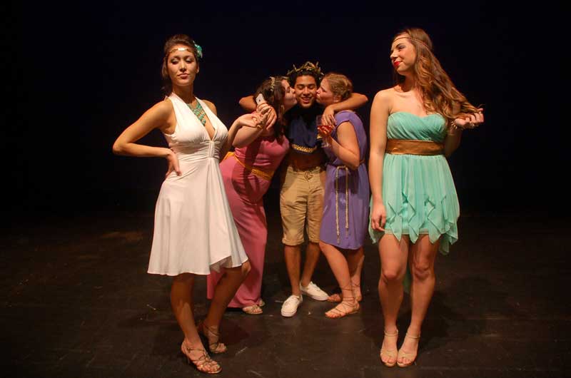 of this Greek MythComedy stuff. Five actors grit their teeth and bear it as they
